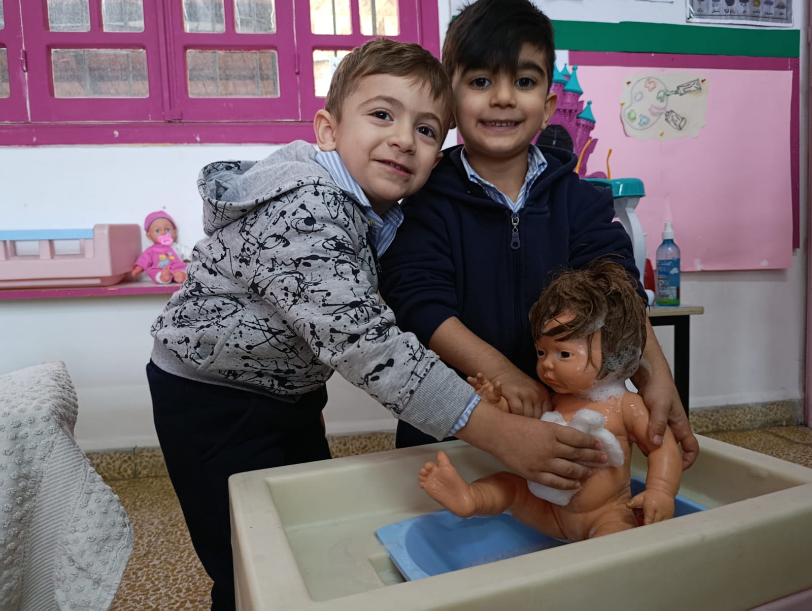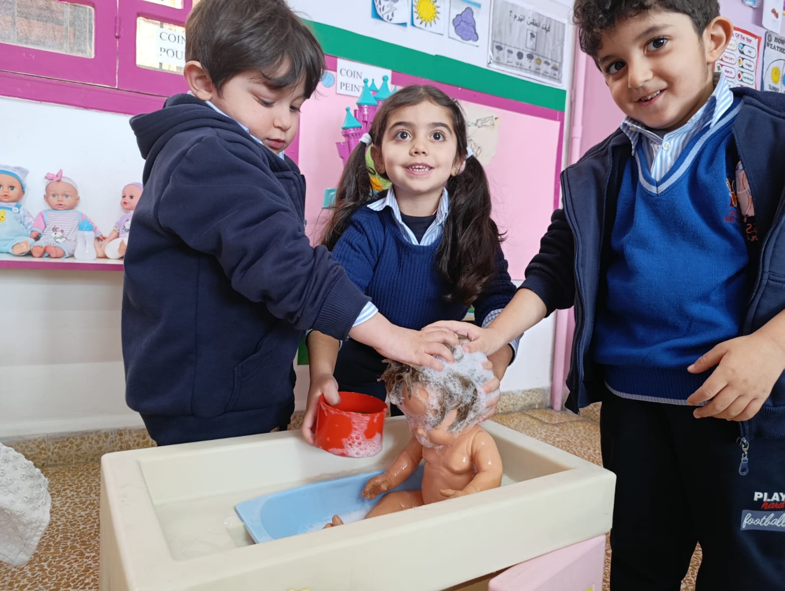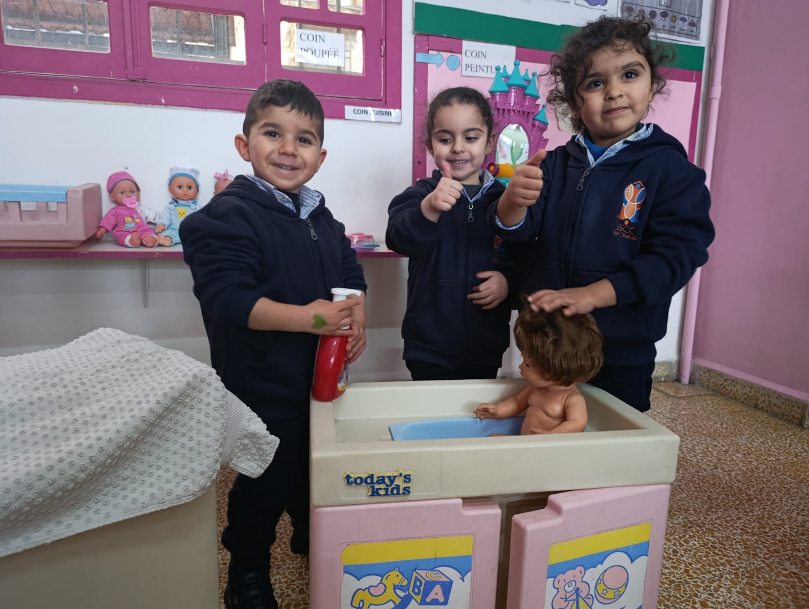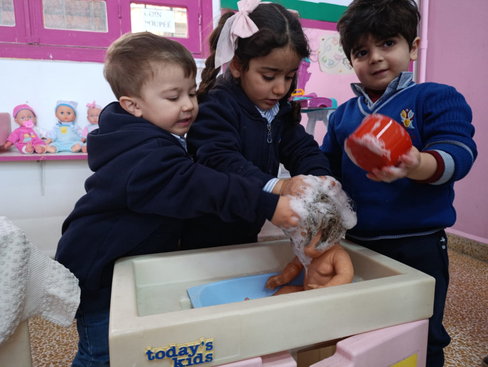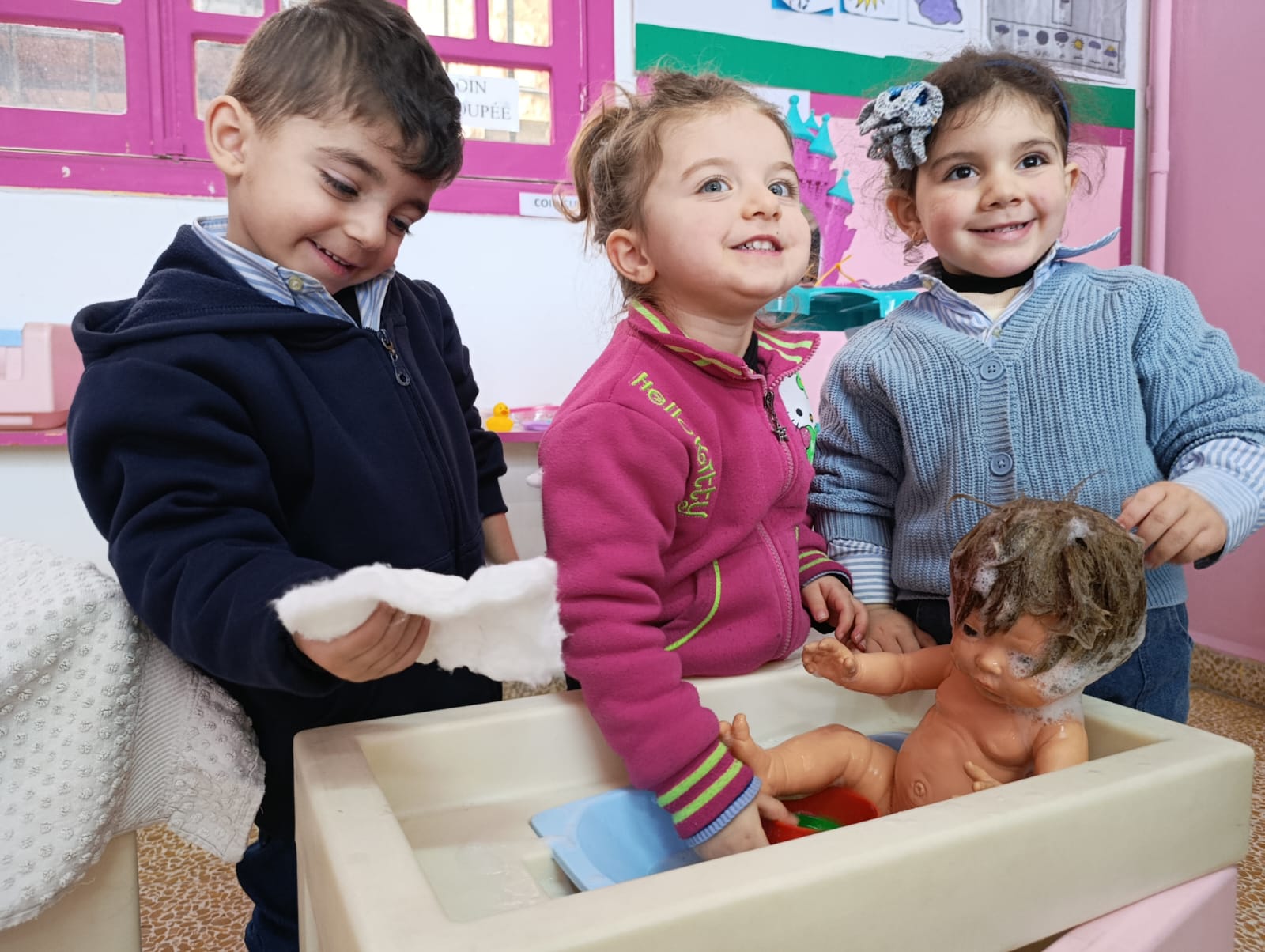 Dans le cadre des activités pédagogiques et de l’éveil à l’hygiène et à la propreté, les élèves de la Petite Section ont participé « au bain de la poupée », le jeudi 22 janvier.