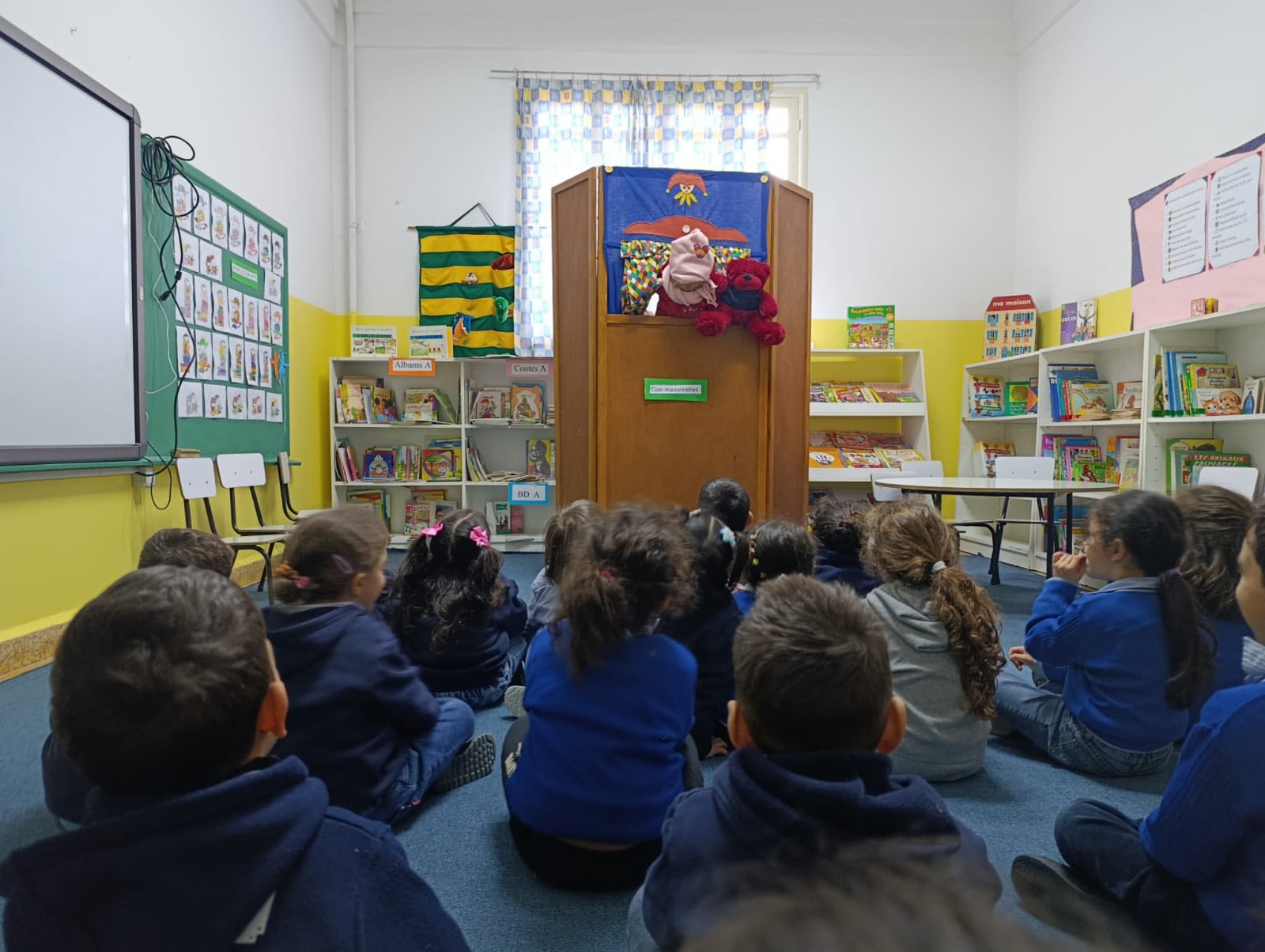 À leur tour, les élèves vont manipuler les marionnettes dans les coins de la classe, favorisant ainsi l’expression orale, l’imagination et l’interaction entre pairs.
