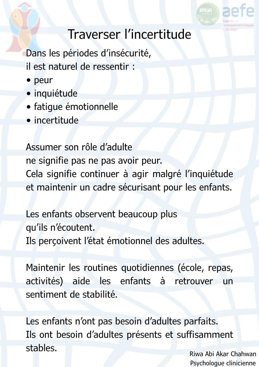 Madame Nathalie Brion, notre Conseillère pédagogique désignée par le Bureau de l’Inspection de l’AEFE a animé ce jeudi 29 janvier 2026 une session de formation de première importance à l’intention de nos personnels enseignants. La thématique de « L’école pour tous », « L’école inclusive » fut ainsi développée à travers la présentation du concept et des visées de l’école inclusive, ainsi que de ses dispositifs facilitateurs de la mise en œuvre des apprentissages. L’école inclusive est un enjeu majeur tant pour le système éducatif français que pour le système éducatif libanais car elle vise à offrir une éducation de qualité à tous les élèves, quels que soient leurs besoins et leurs capacités. Nous sommes convaincus que cette session de formation nous a permis de mieux comprendre et assimiler les besoins spécifiques de tous les apprenants afin d’adapter au mieux nos pratiques pédagogiques. Nous remercions vivement Mme Nathalie Brion d’avoir mis l’accent sur le caractère socialement bénéfique pour tous nos apprenants de l’école inclusive. Que celle-ci soit également à nouveau remerciée pour son expertise et son engagement indéfectible envers notre établissement et nos personnels.